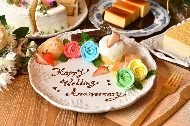 各種お祝いのプレートもご用意できますのでご相談ください!ラルゴならではのたっぷりのスイーツを使ったプレートをご用意致します。