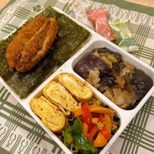 息子の弁当 おはようございます☀️ 昨日は『県民の日』で休校でした〜。 子供が〝学校〟に行っていなければ通り過ぎちゃう日‥‥数年前はディズニーランドDAYって認識だったなぁ☺️ 金曜日🟰のり弁の日 ・カレーコロッケ ・豚と茄子のみぞれ和え ・玉子焼き ・ツナとピーマン炒め