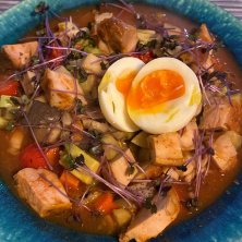 おはようございます\(//∇//)\ 先週からバタバタと動き過ぎていたこともあり、昨日は真っ直ぐ帰宅して身体を休めます パワースープ Zuppa di pomodoro e verdure, pollo, avocado, broccoli, funghi, melanzane, radice di loto, patate, carote, uova, pomodorini, ceci, germogli ↓