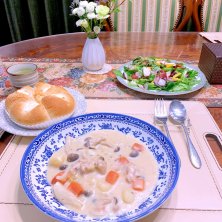 最近冷え混んで来たので 炊き込みご飯に きのこ🍄🟫のお鍋🍲 そしてシチュー 暖かい食べ物が とっても美味しい季節ですね☆ 僕のお家は小さい頃 どんぶりにご飯が敷かれて 上にシチューがかかっていたんです☆ あんまり 世の中で見ないのですが 小さい頃から食べていたので 普通だと思っていたのですが どこに食べに行っても シチュー丼とゆうメニューを 見た事は無いです☆
