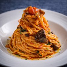 【きのこと、ソフリットトマトソースパスタ】 ハイカロリーな朝昼夜兼用ゴハンです🍝 先日作ったソフリット(ソフリットの作り方は、ピザの投稿に遡って見てね)を、トマトソースにしました 体重がかなり落ちてしまったので、高カロリーなもんを投入します! 私は昔から1日3食たべません(料理は大好きだけど、食べるのが面倒くさい笑)。今日は1食だと思います〜 ニンニク不使用、野菜(ソフリットとトマト缶)の旨味のみで完結するパスタ その辺のイタリアンより、まじ美味しいです😋