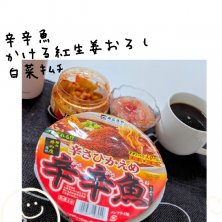2025.10.19 ︎🌟昼ご飯︎🌟 ❤︎辛辛魚🍜 ❤︎かける紅生姜おろし ❤︎白菜キムチ ❤︎ᴴᴼᵀ烏龍茶(サンファイバー) ⋆┈┈┈┈┈┈┈┈┈┈┈⋆ 今日のお昼ゎ、サラダ巻きの予定だったけど コレ🍜が気になってたから変更✋ ずっと食べてみたかったけど売ってなくてやっと買えた…´Д`)ヤット‥ 最初の1口は特に辛さは無くて、魚粉?の旨みが強かった。でも食べ進めると辛さ🌶が来たけど旨みが強いから食べれる辛さかも!だけど唇はヒリヒリしてたꉂ🤣𐤔 汗もジワジワとね💦
