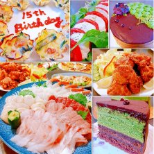 💖娘のBIRTHDAYパーティー💖 メニュー⏬ お刺身盛り合わせ 唐揚げ 餃子の皮キッシュ カプレーゼ オクラのキムチーズ 抹茶とチョコのガナッシュケーキ(投稿済み) ケーキ作りで少し生クリームが余ったので、餃子の皮を使ってキッシュに✨これが大好評💖 ケチャップでメッセージも♡ メインのケーキ🎂 緊張のカット!断面に歓声❗ 一番下だけフランボワーズソースで作ったジャムをサンド💡これが全体のバランスを引き締めてくれてウマ⤴イ❣️娘の笑顔が眩しいパーティーでした😍