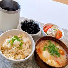 2025.12.28︎🌟早めの夜ご飯︎🌟 ✰鯛めし ✰黒豆 ✰ポテサラ・キャベツmix・トマト🍅 ✰トマトと落とし卵の味噌汁🍅🥚 ✰ᴴᴼᵀほうじ茶(サンファイバー) ⋆┈┈┈┈┈┈┈┈┈┈┈┈┈┈┈⋆ 久しぶりのちょっとまともなご飯🍚🥢✨ 鯛めし美味しぃ〰❣️ 半分食べたら味噌汁の半熟卵をのせて食べたらまた美味しぃ✌🏻 ̖́-🩷 今日ゎ寝室の模様替えに床の拭き掃除して窓のサッシを綺麗にした! 明日はカーテンやら色々洗濯してまた拭き掃除! もぉそれぐらいでいーかな❓