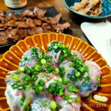 夜中ご飯 鯵の手毬寿司、牛タン焼き、鯵のなめろう、ビール 今日はバケタンとバケオが連休で帰ってきました!3日間、バケタンは4日間家族揃います! まぁ、それぞれ予定があるけど😊 ジュニアは大喜びで、男3人でスマブラで遊んでます笑 そろそろ寝かせたいがたまにはいっか〜 夕飯はバケタンが作ってくれました!お寿司が手毬寿司みたいで可愛くて美味しかったです!