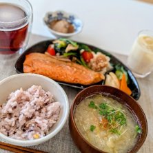 ⋆┈┈┈┈┈┈┈┈┈┈┈┈┈⋆ 2026.3.15︎🌟早めの夜ご飯︎🌟 ♥︎鮭ハラス(大葉・大根おろし) ♥︎ほうれん草舞茸トマトのソテー ♥︎白菜長葱の味噌汁残り ♥︎ヨーグルト味噌漬け ♥︎雑穀米❤︎ ♥︎豆乳甘酒 ♥︎𝐇𝐨𝐭ジャワティー(サンファイバーAI) ⋆┈┈┈┈┈┈┈┈┈┈┈┈┈⋆ 久々のハラス𓏸𓂂⍤⃝ ⋈✨ 立派すぎる‼️ ハラス食べるとご飯🍚止まらんくなるから困る~🤩🤩 ハラスの脂でソテ~良き👍