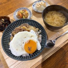 夜ですが… ランチ投稿いきまーす🤗 ☆めばえ定食🌱 ※牛丼 ※副菜3種 ※野菜たっぷり味噌汁 某牛丼チェーンより美味しいわ👍💕 相変わらずほぼ毎日職場の飲食部門のカフェに直行しています😅 しかも正式にマネージャーに任命され、めっちゃプレッシャーなんですけどぉ…😓💦 赤字部門やけど、開き直って逆境を楽しむことにしよう!