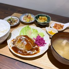 今日も朝イチからカフェのサポートへ🤗 業務が一段落したところでランチタイム⏳ ☆めばえランチ🌱 ※デミグラスソースハンバーグ ※副菜(←本当は3種やけど、スタッフが一皿おまけしてくれました🥰) ※野菜たっぷり味噌汁 ※新米 ふっくら仕上げのハンバーグは安定の美味しさ👍✨ これで午後からも頑張れました〜😆💕