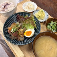 本日のランチ🤗 ☆めばえランチ ※牛すじ大根 ※副菜3種 ※野菜たっぷり味噌汁 ※十六穀米ごはん🍚🥢 職場の飲食部門のスタッフが相次いで体調不良に…😱 顔馴染みのお客様のなかにもここ数日ご無沙汰の方も…😓 今日の牛すじ大根、めっちゃ美味しくできたのに食べてもらえなくて残念やわ…🥲💦 ミル友の皆さんも体調管理にはくれぐれもお気を付けくださいませ🙇♀️