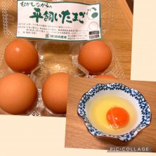 ☆むかしながらの平飼いたまご ずっと気になっていたお店。ほんとは10個入りなのに、ダメ元で聞いたら、半分に分けてくれました。めちゃ嬉しい!! 美味しい卵は卵かけご飯!キミが濃厚で美味しかったー♡
