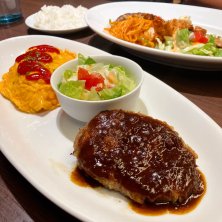 ハンバーグとオムライスの プレートA うしろはビックB ビックシェフの頃はよく利用していたけど 店名変わってからはお初🔰
