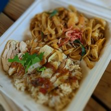 万博でタイ料理 カオマンガイとパッタイ よかれと思って頼んだのに、辛くて息子が食べれず… 普通の焼きそばとか、カレーとか食べたかったと… 万博やから、外国のんがいいと思ったのに… 失敗。 めっちゃ量あったけど頑張って食べた!