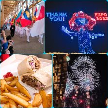 ビーフドネルドゥルム🇹🇷 晩御飯は、トルコのお店が最後の呼びかけしてたから😆 ケバブの巻き巻き版😁 味付けは、独特しさなくサラダと一緒に食べてる感、うま〜い😆 写ってないけど、トルコ紅茶と🍺もあるよ😋💕 最後のドローン、サプライズ ミャクミャク登場💕 みんな感動で号泣😭 ありがと〜万博👋
