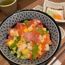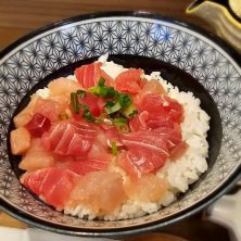 南まぐろとびんちょうの二色丼♪ 出汁で食べられるのから~ 2度楽しめるー(*´▽`*)