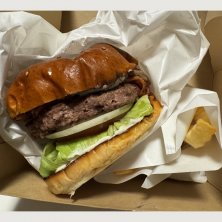 HAMBURGER SHOP 富吉 BROZERS’ で修業を積んだご夫婦が営む、 創作グルメバーガー専門店 ELVIS BURGER 1944円 バナナ、ピーナッツバター、メープルシロップ、ベーコン、チェダーチーズ、エッグ、レタス、トマト、オニオン ハンバーガーにとろとろバナナ🍌美味しい‼ 福岡県 六本松駅