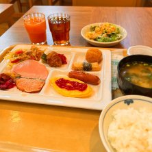 ビジネスホテルの朝食ブュッフェでしっかり食べて、今日も顔晴ります😄