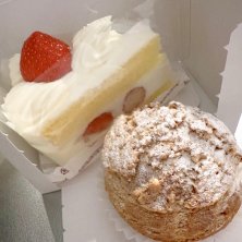 今日のデザート🍰 シャトレーゼのスペシャル苺ショートに、シャトレーゼの隣のケーキ屋さんの塩シュー💓 苺のショートケーキの苺は酸味強めだったけど甘いスポンジとクリームに合わせると美味しい✌️ 塩シューは中のクリームがぎっしり!クリームは甘すぎずそこまでカスタード感濃厚!って感じではなかったけど、塩がかかったシュー生地と相性抜群で、このシュークリームはリピしたいなって思った🤭❣️✨✨