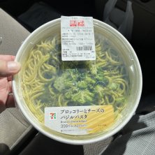 ブロッコリーとチーズのバジルパスタ 仕事の途中に車の中で食べたので Yシャツに緑色の点々が…😅