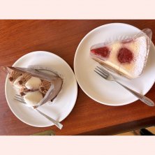 体調がすこし復活したというのでリクエストでケーキ 美味しかった〜 イチゴのチーズケーキ チョコケーキ