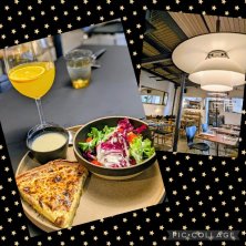 キッシュプレートランチ シャンピニオンフロマージュ モヒートミント、ソルティドッグ コーヒー 友人とランチに行きました 店内もモダンでお洒落な雰囲気でソファ席でゆったりできました