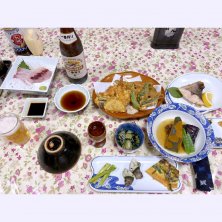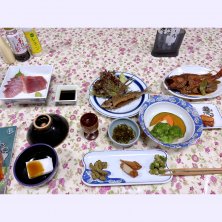 昨夜の民宿の夜ご飯。屋久島訪問中〜w