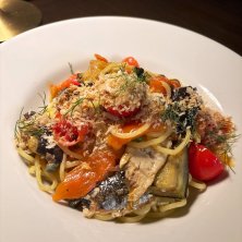 サンマと秋茄子のトマトパスタ