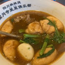 麻辣湯🇨🇳🐮🦆🩸🥬 スープは麻辣中辛、具材は牛肉・板春雨・魚卵団子・空芯菜・フー玉・鴨の血にしました✋ フー玉は丸い形の揚げ麩とのことで、薬膳スープをしっかり吸い込んでました 鴨の血は寒天っぽい食感であまり味はしませんが、タンパク質やビタミンたっぷりの栄養満点食材です✨
