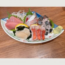 造り五種盛り 本鮪・ホタテ・縞鯵・金目鯛炙り・鰆炙り