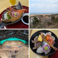 鳥取砂丘 楽しみにしていたモサエビ丼の店は休み・・・ 別の店でモサエビ刺身と 海鮮丼 砂の美術館の精巧さに驚いた。 豆腐ちくわを食べ忘れた😢