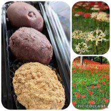 おはぎ こし餡、粒餡、きな粉 今日は近くの公園に彼岸花を見に行きました ちょうど満開で綺麗でした