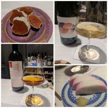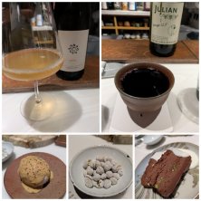 2月6日の2軒目はワインバーへ おつまみは干柿とかまぼこ(!?) 私は自然派のワイン2種 娘はワイン苦手なのでうすにごりの日本酒を飲んでました