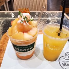 今年初めてちゃんとしたパフェを食べた気がする。桃パフェとアップルジュース