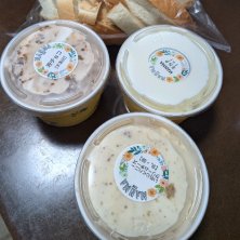 今日は久しぶりに暑くて、帰ってきた子供たちとジェラート買いに行ってきた。 私はいちじくハニークリームチーズ、長女は沼チョコ、次女はミルク。 美味しかった🥰 フルーツサンドも売ってるからか、パン耳無料で置いてあったので、頂いちゃいました♡