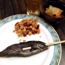 夕食バイキング。 美味しそうに撮れなかったけど、虹鱒の塩焼きと豚のもつ煮本当においしかった!