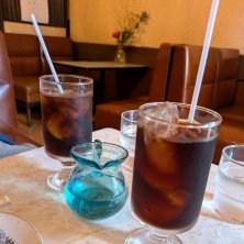 町家の方にお散歩行って喫茶店で休憩。 おばちゃんワンオペの小さい喫茶店。 おばちゃんに「アイスコーヒー?(でいい?)」って言われて、「あ、はい」って。 強制アイスコーヒーだった(笑
