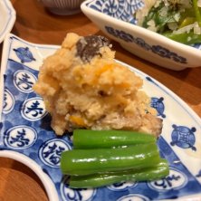 キタアカリのポテサラ 実山椒とエシャロットフライ