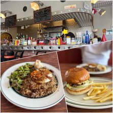 週末ランチ♡ 久しぶりにのんびりな週末。 土曜日は奈良に隣接する京都、木津川市の田舎にぽつんとあるアメリカンダイナーに行ってきました♡ なんでもおばあちゃんがやってたお店を孫が引き継いだらしく、テイスト変わってアメリカン🇺🇸😎 お店の内装も凝ってる♡ オーダーしたのは私が男子人気No.1と書かれてたフルサイズカスタム。(牛肩ロース肉のガーリックライス) 食べてみたら衝撃!めっちゃ攻めてる!コレは凄い!! ビールくださーい♡笑 旦那はチーズバーガー。味見したらこれも美味〜♡