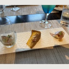 前菜 左から、カンパチとアボガドのマリネ、ラタトゥイユのキッシュ、パルマ産生ハムと無花果 ビールは我慢しました(^^;) どれも美味しかったです。