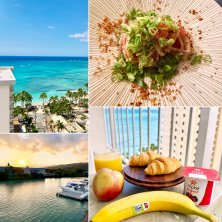 ブランチは昨日ウォールマートで買い込んだバナナやヨーグルト、パンなどをテラスでワイキキビーチを見ながら食べて収録に向かう。 ハワイカイのスタジオの夕景は素晴らしかった。 夕食は昨夜22時以降は夕食難民になったので22時以降でも入れるZIGUへ。 ポケを食べて部屋飲みで朝まで