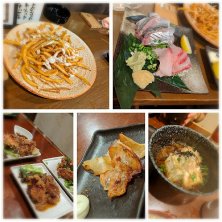 嫁ちゃん2人で次男の友人の店で飲み🍶 唐揚げ、エイヒレ、刺身はサービスしてもらいました、揚げだし豆腐その他いろいろ食べて美味しい日本酒呑んで 久々の最終電車で これから帰ります🚊