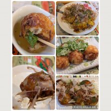 お昼はたこ焼き YouTubeで見て気になってたお店 下津井産の🐙を大ぶりで切った🐙か入ったたこ焼きらしい たこ焼き、出汁たこ焼き、お好み焼きを奥さんとシェア 期待したほど大きな🐙じゃ無かった 出汁たこ焼きは結構美味しかったかな。