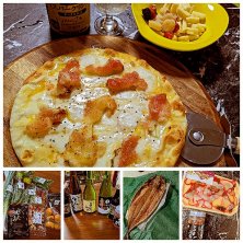 道の駅で野菜、果物、辛口の日本酒、酒にあう品々を買ってきました。 お土産でも喜ばれる干物屋さん【提灯屋ひもの店】で特大鯖干物も買ったしね𓆝 しばらく楽しめそうだな😊🍶 市販の安いピザにトッピング、買ってきた いちじくとモッツレラチーズのせて ハチミツたっぷり🍯 簡単おつまみ❣