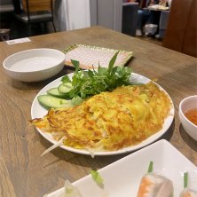 大型チェーン店が立ち並ぶ入りやすいお店なのにメニューがガチ過ぎて怯んだ💦 カエルメニュー多数🐸 無難にバインセオ注文したよ😋