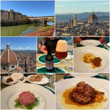 イタリアごはん♡(フィレンツェ編) 🇮🇹に到着してから2日間は旦那のアレにお付き合いしてましたが、今日からフリータイム。 お散歩したりドライブしたり… ここ3日間、すんごく天気良くて昼間は暑いくらいです。(朝は10℃で寒い) フィレンツェのシンボルはやっぱり大聖堂♡ 昼間は間近で夕方は高台から。塔に登るとこんな景色。 夜は去年タルタルが美味しかったお店へ。 最初は良かったけど、パスタを頼んだつもりが謎のもの。 ミニバーガーを頼んだつもりが一つ上の茄子料理… 旦那の機嫌が…。最悪。