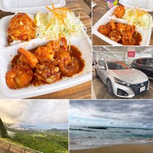 朝起きて10時にUberを予約してホノルル空港のSIXTへ NISSAN マキシマをレンタル すぐにワイケレのアウトレットへ。娘のお土産バックを買ってからNorthのハレイワでガーリックシュリンプを食べる。 前に行ったお店は見つけられず、Matsumoto shave ice のモールに車を停めてタイフードのガーリックシュリンプをスパイシーと2種類。 普通の方にレモンをたっぷりかけて食べる方がやっぱり美味しかった。 その後ハレイワビーチパークとサンセットビーチでドローン撮影。最後にヌウアヌパリへ
