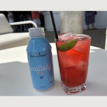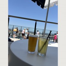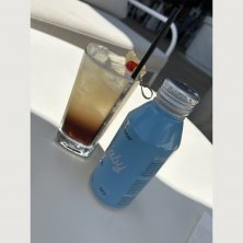 旦那さんがオーダーしたカクテル🍸 カクテルなのに、映えない😅 ホテルで貰え水のボトルは、可愛いよ〜😁 そして、スカイデッキで、のんびり〜😊