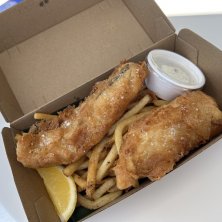 フィッシュ&チップス〜🍺 旅行中、まだ、食べてなかったよ〜😜 スカイデッキで、のんびり〜😊 時計台ツアーの予約時間まで、ここにいることに😁