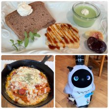 ランチへ行って「ラボット」を堪能してきた。 想像以上に可愛い(* ̄▽ ̄)❤️ ランチのサラダも「マイクロきゅうり」など普段みかけない野菜が入って美味しいし、チーズがけのナポリタンも美味しかった〜ヽ(* ̄▽ ̄)ノ デザートもお得な感じ 。 デザートセットのうち一つを自分で選べるってのも良いね。