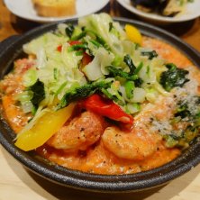 鉄板パスタ ずわい蟹と赤エビのトマトクリーム ソース (野菜トッピング) (^o^)/