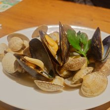 たっぷりアサリと ムール貝のガーリックソテー (^o^)/